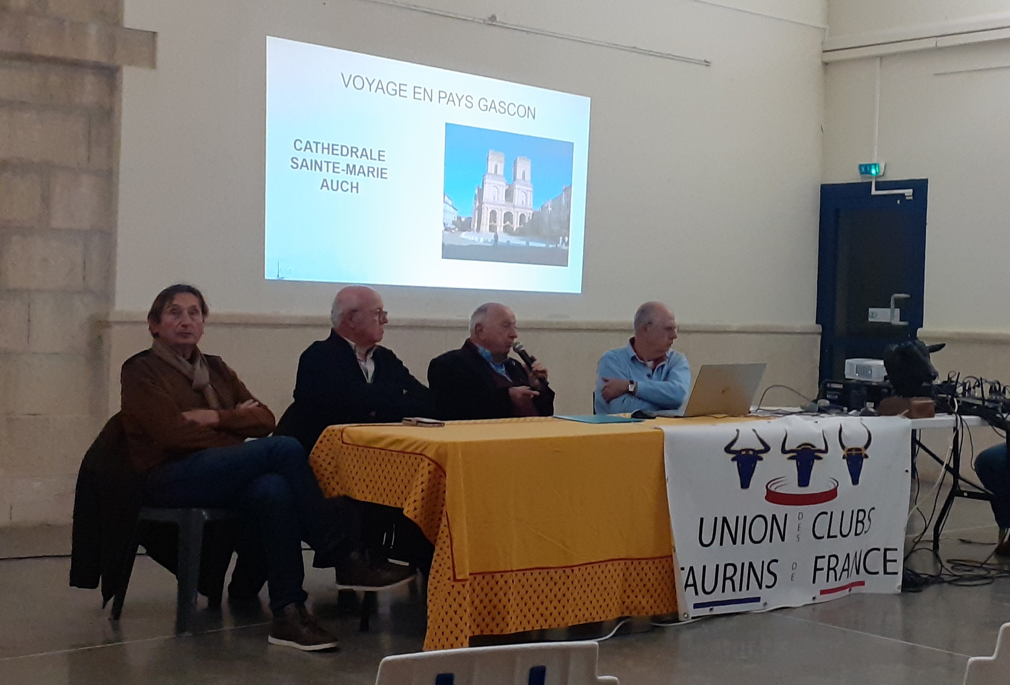 44 membres ou futurs ont pu participer à ce voyage inédit en France dans le GERS. Nous l’avons organisé nous-mêmes, ce qui nous a permis d’enregistrer un bénéfice inhabituel puisque nous n’avions pas à rémunérer un voyagiste. Cela grâce à un très important travail de Claudette et Bernard, remerciés spontanément par les applaudissements du public… Nous avons pu allier la Tauromachie avec les visites chez le Ganadero Jean Louis Darré, la Cuadra d’Alain Bonijol, les encierro à SEISSAN, la novillada piquée (la 1ère dans les arènes de SEISSAN), les apéros dans la Ville, l’accueil de ses habitants et de son Maire, des Clubs Taurins et aussi la Gastronomie locale (Foie Gras, magrets, veau à la broche, chuletada matinale… sans oublier la visite d’Auch et de sa magnifique Cathédrale. Vous pourrez revoir tout cela sur notre site